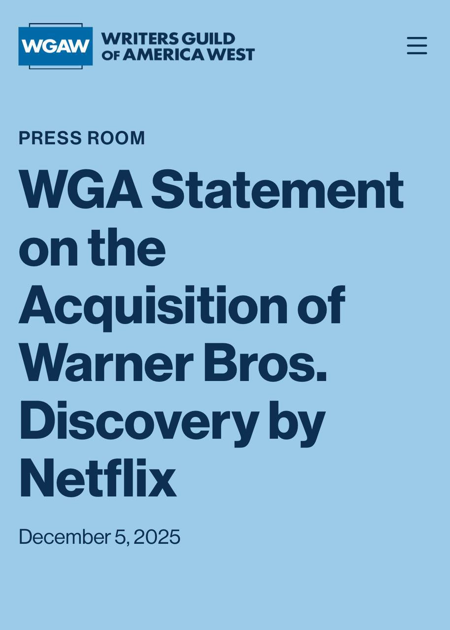 "Антимонопольне законодавство покликане запобігти поглинанню найбільшою у світі стрімінгової компанією одного зі своїх найбільших конкурентів. Це призведе до скорочення робочих місць, зниження заробітної плати, погіршення умов праці всіх працівників індустрії розваг, підвищення цін для споживачів та скорочення обсягу та різноманітності контенту для всіх глядачів. Працівники індустрії, як і громадськість, вже страждають від того, що лише кілька впливових компаній зберігають жорсткий контроль над тим, що споживачі можуть дивитися по телевізору, стримінгових сервісах і в кінотеатрах. Це злиття необхідно запобігти", – сказано у заяві WGA.