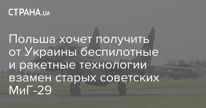 Натомість на передачу Україні своїх списаних радянських винищувачів МіГ-29 Польща бажає отримати від Києва безпілотні та ракетні технології.