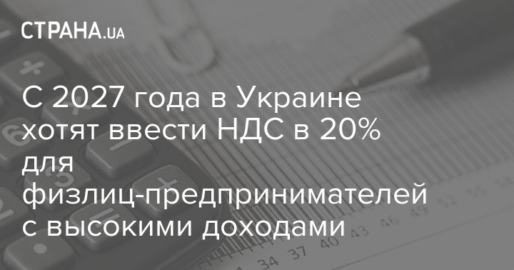 З 2027 року в Україні хочуть запровадити ПДВ у 20% для фізосіб-підприємців із високими доходами