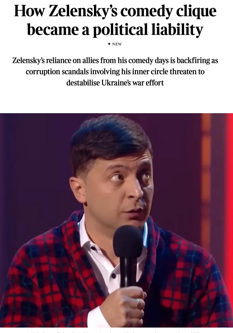 Так, британська газета The Times випустила статтю із заголовком "Як комедійна кліка Зеленського стала політичним тягарем".