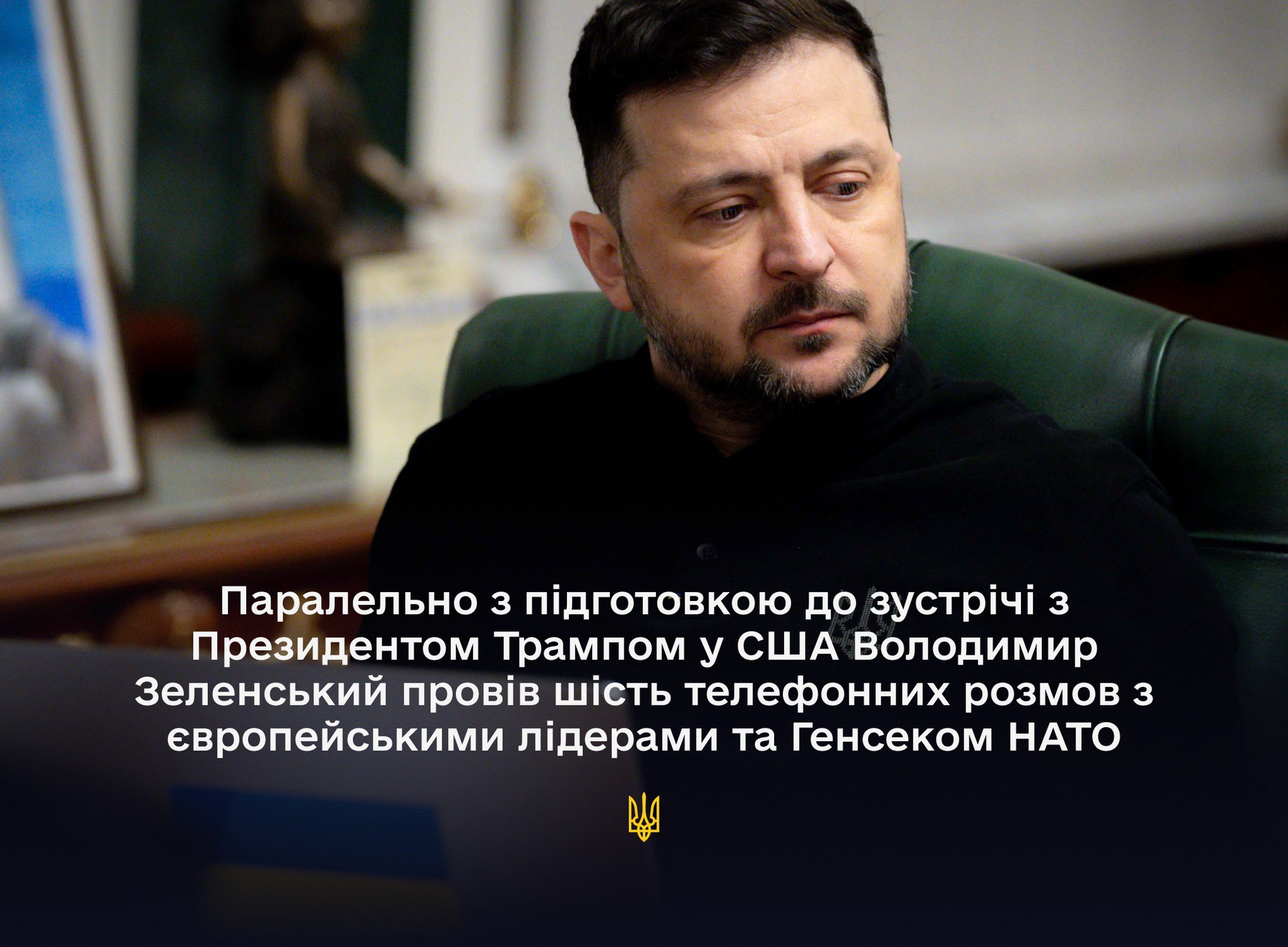 Президент України Володимир Зеленський перед зустріччю з американським колегою Дональдом Трампом провів шість окремих телефонних розмов із союзниками