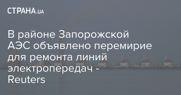 У районі Запорізької АЕС оголошено тимчасове локальне перемир'я між Росією та Україною для ремонту ліній електропередач.