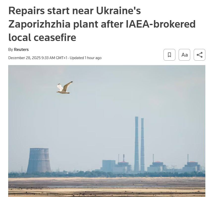 Гроссі заявив, що бойові дії поблизу станції призупинено, щоб фахівці могли відновити пошкоджену інфраструктуру. Він зазначив, що такі заходи є вкрай важливими для забезпечення ядерної безпеки та стабільного енергопостачання на об'єкті.