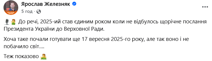 Минулий 2025 став єдиним, коли не було щорічного послання президента України до Верховної Ради.