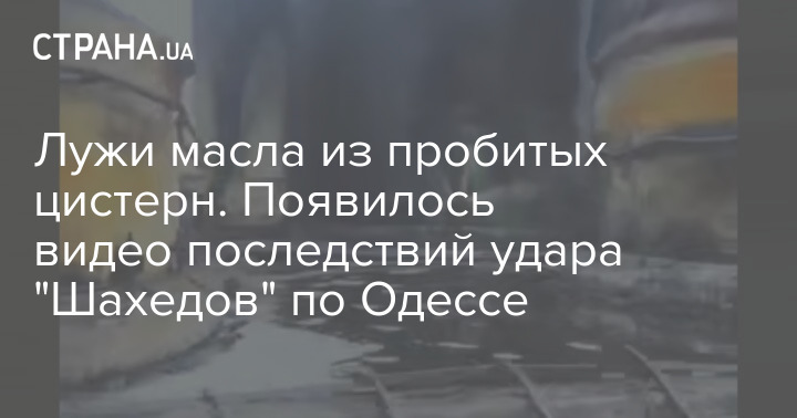 На відео стоянка з масловозами покрилася шаром продукту кілька сантиметрів. Можна помітити, що струмені олії б'ють із ушкоджених уламками цистерен.