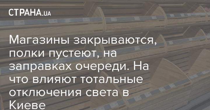 Внаслідок жорстких перебоїв з електроенергією у столиці та області почали "сипатися" ланцюжки поставок та продажів ключових товарів - їжі, палива, ліків.