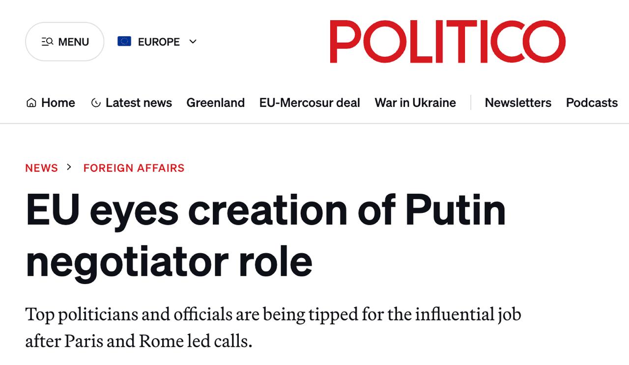 У Євросоюзі обговорюють висування переговорника з главою Кремля Володимиром Путіним, на посаду розглядаються колишній прем'єр-міністр Італії Маріо Драгі та президент Фінляндії Олександр Стубб.