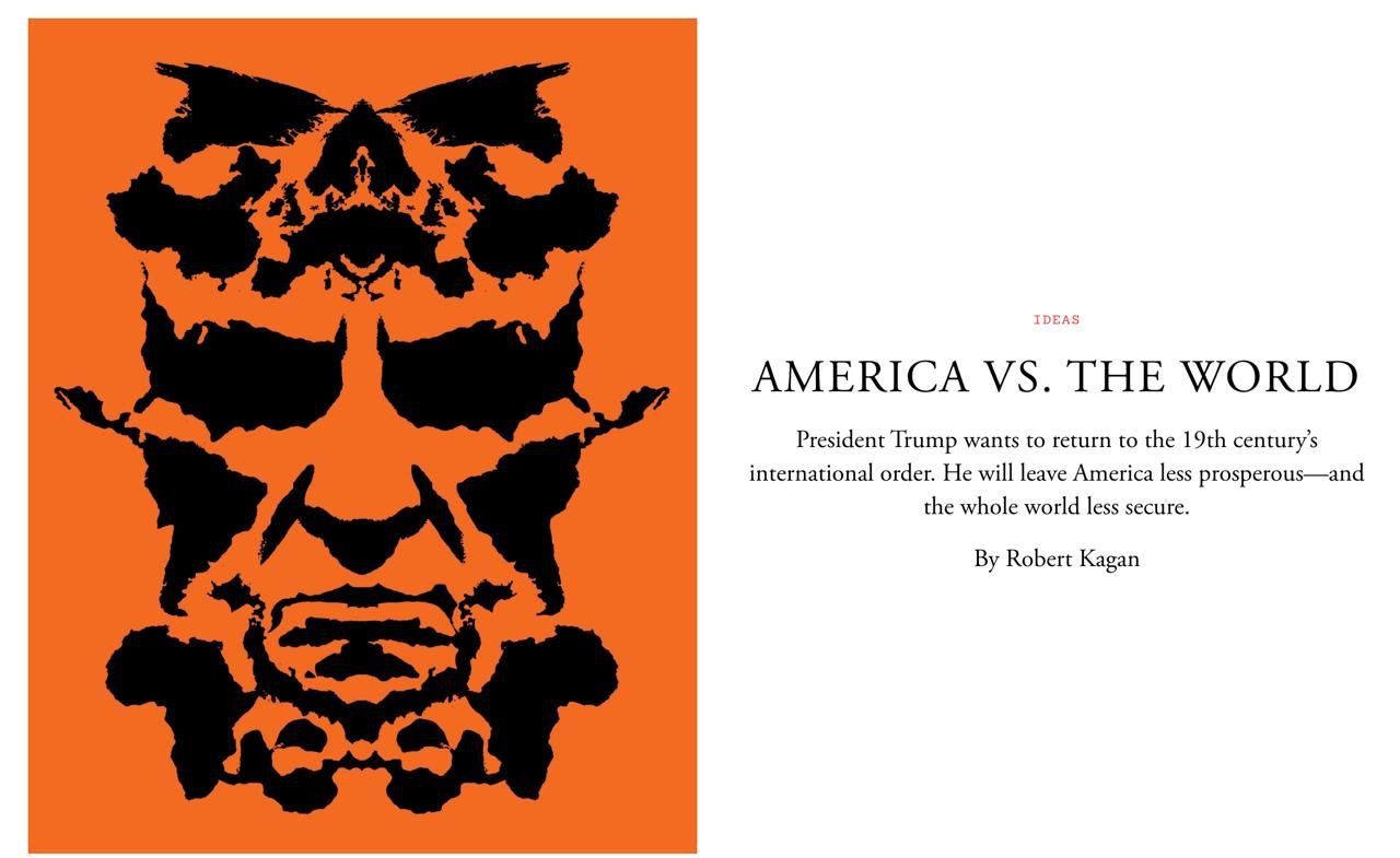 Каган описує світ після 1945 року як епоху стійких альянсів, відкритої торгівлі, відносної безпеки та обмеження силової конкуренції між провідними державами. Відмова від цієї моделі, за його оцінкою, веде до повернення до логіки світу до 1945 року - епохи сфер впливу та регулярних воєн за їх переділ між великими державами.