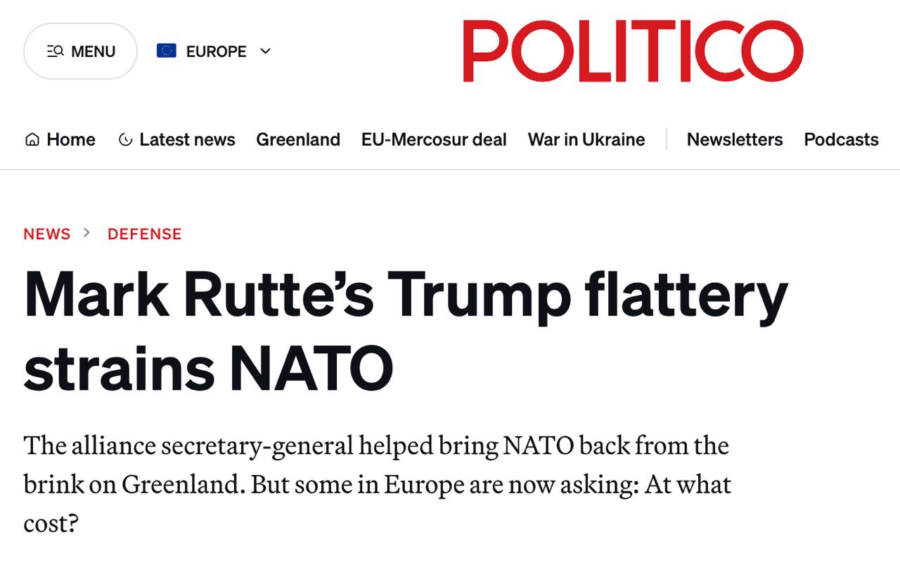 Європейські дипломати анонімно заявили Politico, що Рютте хоч і переконав Трампа відмовитись від загроз анексувати Гренландію, але поставив під загрозу довгострокове майбутнє НАТО. Захисники Рютте кажуть, що він упорався із завданням збереження цілісності Альянсу, а всі задоволені бути не можуть.