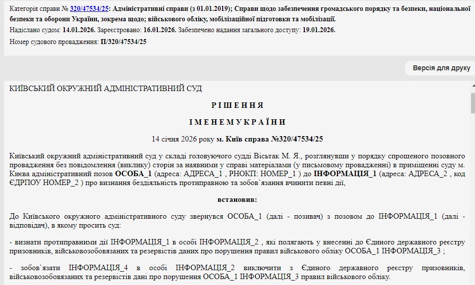 Суд ухвалив, що ТЦК не мають права самостійно вносити людину в розшук