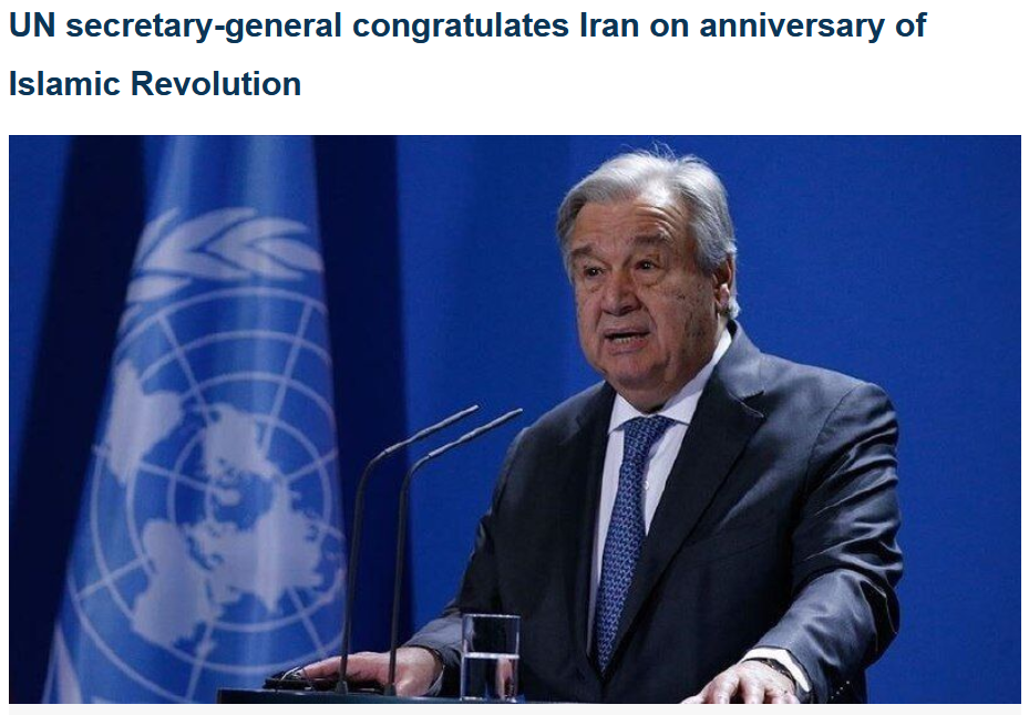 Генеральний секретар Організації Об'єднаних Націй (ООН) Антоніу Гутерріш надіслав президенту Ірану Масуду Пезешкіану офіційні привітання з нагоди 47-ї річниці ісламської революції.