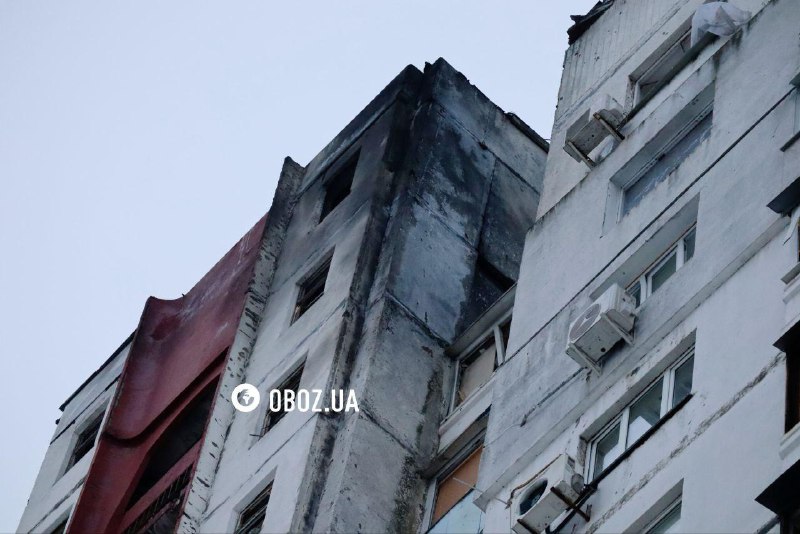 Одна із постраждалих уночі багатоповерхівок Києва. Фото: ДСНС