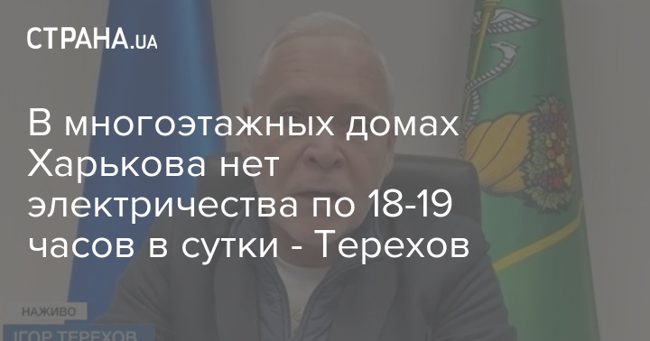 У багатоповерхових будинках Харкова немає електрики по 18-19 годин на добу - Терехов