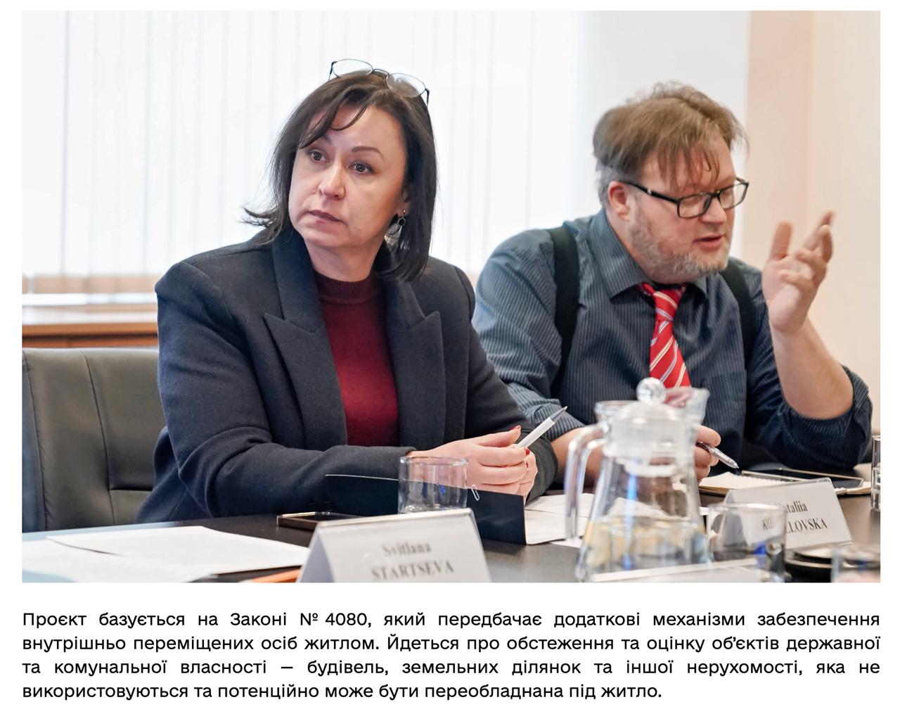 "Проект заснований на законі №4080, який передбачає додаткові механізми забезпечення внутрішньо переміщених осіб житлом. Йдеться про обстеження та оцінку об'єктів державної та комунальної власності - будівель, земельних ділянок та іншої нерухомості, які не використовуються та потенційно можуть бути переобладнані під житло", - йдеться у повідомленні.